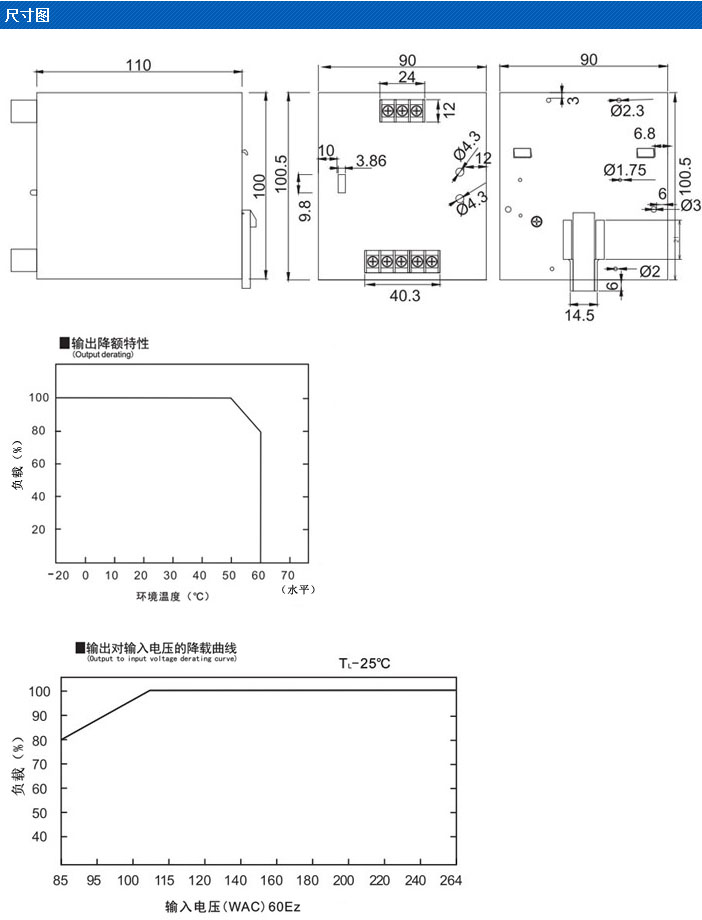 ※ 效率:是在110VAC输入及额定负载情况下做测试。 |