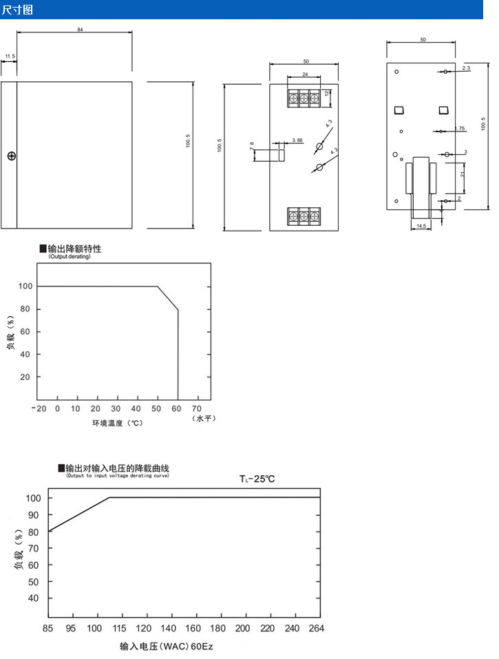 ※ 效率:是在110VAC输入及额定负载情况下做测试。 |